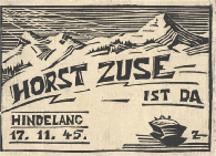 Geburtsanzeige von Horst Zuse als Holzschnitt (1945).