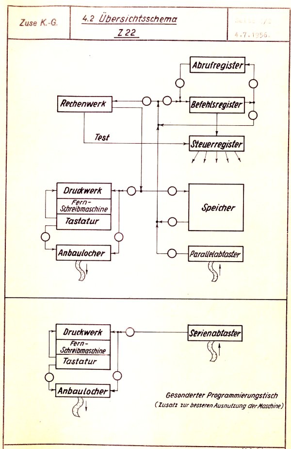 Das Bild unten zeigt das Blockschaltbild oder Übersichtsschema der Z22 (1956).