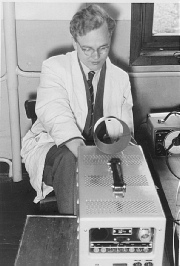 Lorenz Hanewinkel um 1956 an einem Oszillographen.