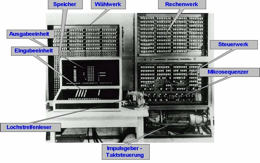 Der Nachbau des Rechners Z3 wird als großes Bild gezeigt.